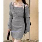 ワンピース カシュクールリブトップスニットセットワンピース