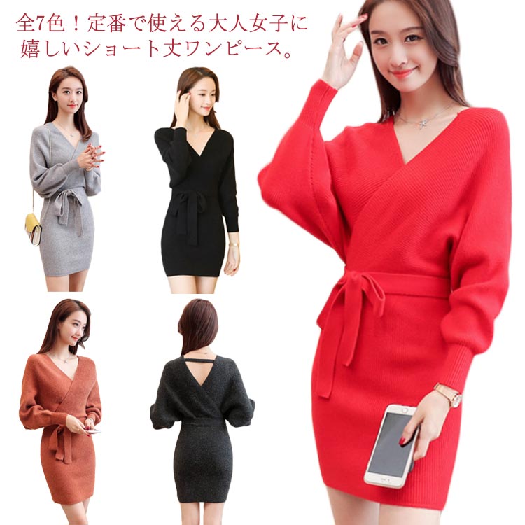 ワンピース カシュクールウォッシャブルニットワンピース 秋服 冬服