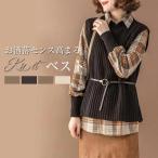 ベスト レディース ニット ノースリーブ セーター スリット入り トップス カシュクール風 レイヤード ミディアム丈 ラウンドネック 無地 女性用 可愛い お洒落