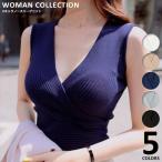 ノースリーブ タンクトップ レディース ニット リブ リブニット トップス vネック Vネック インナー