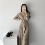 ニットワンピース ロング マキシ丈 タイト 秋冬 カシュクール マーメイドライン ワンピース フレア スリム 着痩せ 上品 きれいめ シンプル無地