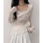 ニット セーター キャミレイヤード短丈カシュクールニット レディース