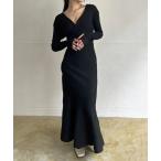 【宅配便で送料無料】【レビューを書いて10%OFFクーポンGET】 2WAY ワンピース ニットワンピース タイトワンピース ミモレワンピース ロングワンピース リブニット Vネック カシュクール ミモレ丈 ロング丈 肌見せ きれいめ セクシー 長袖 厚手 無地 大人 秋 冬 レディース