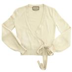 新品同様 グッチ カシュクール ニットカーディガン ロゴ 刺繍 リボン カーディガン カシミヤ アイボリー 0561【中古】GUCCI