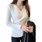 カシュクールネックニットトップス ニット セーター 長袖 レディース セクシー ニット トップス Vネック ウエストマーク トップス リブニット カシ