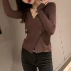 ☆ ブラウン ☆ リブニットニット 長袖 vネック セーター レディース セーターレディース 長袖 ニットセーター ニット カシュクール
