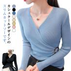 ニット セーター レディース 女性用 トップス 長袖 Vネック カシュクール リブ 無地 タイト シンプル おしゃれ きれいめ 可愛い 着回し力 普段