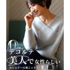 ニット セーター 「全骨格美人見え」ラメモヘアカシュクール前後2WAYニット レディース