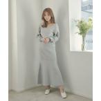 カシュクールマーメイドラインニットワンピース ワンピース レディース ニット ロング丈 マキシ丈 長袖 リブニット フレア シンプル