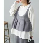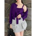 ニット セーター 「2点セット」ソリッドカラー 裾フリル ニット × キャミソール レディース