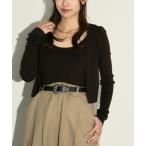 カーディガン 2ピース リブニット キャミソール×クロップドカーディガン アンサンブル レディース