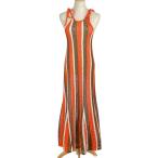 フェンディ FENDI キャミソール ニット ワンピース メッシュ フレア レイヤード ワンピース スカート 綿 ナイロン オレンジ ブラウン レディース 中古