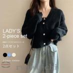 セットアップ ニットキャミソール×カーディガン 2点セット レディース
