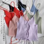 キャミソール レースアップニットキャミソールレディース