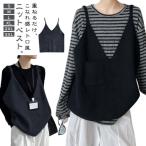 ニットベスト レディース ニット 重ね着 ベスト ニット編み プルオーバー 春 トップス ビスチェ ニットキャミソール フレア 無地 ゆったり 大きい