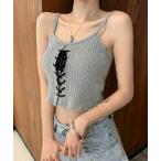 キャミソール フロント レースアップ リボン リブニット キャミソール ショート丈 ビスチェ