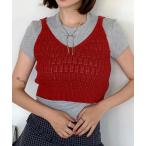 ニット セーター キャミソール付きフレンチスリーブオーバーサイズシアーニット レディース