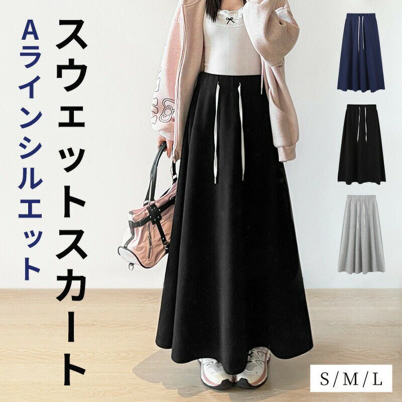 70%OFF スカート ロング スウェットスカート 動ける ウエストゴ ゆったり 体型カバー 着痩せ ボトムス 上品 オフィスカジュアル きれいめ 大人 2025秋冬新作 黒 春秋