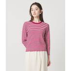 ニット セーター 品よく鎖骨魅せ。袖ボタンクルーネックリブニット(無地・ボーダー) レディース