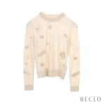 エルメス HERMES Candy Libris ニット クルーネック 半袖 総柄 ウール ライトベージュ 5H2635D3 レディース 中古