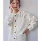 カーディガン 透かし編み メッシュニット クルーネック カーディガン「着用動画あり」 レディース