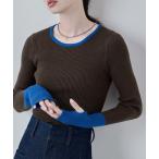 ニット セーター バイカラーリンガーネックリブニット レディース