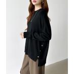 ニット セーター ホック付きポロ襟ミックスニット レディース