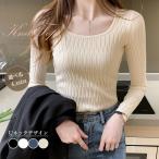 ニット セーター スクエアネック長袖リブニット レディース
