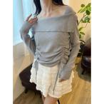 オフショルダー トップス リブ ニット 長袖 スクエアネック 2way 着回し フィット シンプル フェミニン フリーサイズ ブラック ホワイト グレー ベージュ アイボリー JOCOSA 7240 送料無料 即納