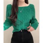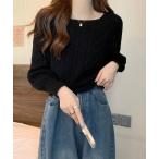 ニット セーター スクエアネックケーブル編みニットプルオーバー レディース