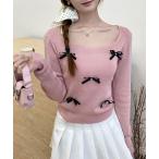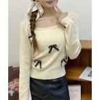 ニット セーター 「25秋冬新作」リボンニットトップス スクエアネック秋服 レディース