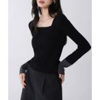 ニット セーター 袖シアースクエアネックリブニット レディース