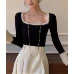 【SALE/30%OFF】ニット レディース 長袖 トップス プルオーバー スクエアネック コンパクト 配色 パイピング シンプル きれいめ フェミニン カジュアル 大人 おしゃれ 着回し なめらか BLUEEAST