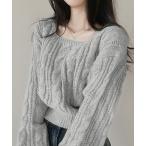 ニット セーター ボリュームスリーブケーブルニット レディース