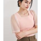 ニット セーター スクエアネックシアーキャンディスリーブリブニットプルオーバー レディース