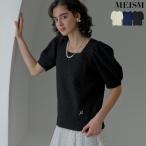 スクエアネックランタンスリーブドッキングニット トップス レディース ニット 半袖 ボリュームスリーブ スクエアネック リブニット デニムライク