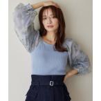 ニット セーター リボン付きシアーシャツドッキングスクエアニット レディース
