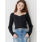 ニット セーター スクエアネック パフスリーブ リブニット レディース
