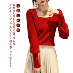 ニット セーター ソリッドカラー スクエアネック 長袖 リブ ニット プルオーバー レディース
