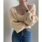 ニット セーター スクエアネック パフスリーブ 長袖 リブニット トップス レディース