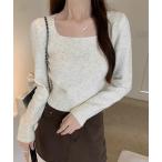 ニット セーター スクエアネック リブニットトップス 秋冬 レディース