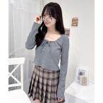 ニット セーター フロントリボンスクエアネックニットトップス レディース