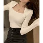 ニット セーター スクエアネックリブニットトップス「オフィスカジュアル 着回し抜群 大人」「再入荷」 レディース