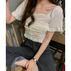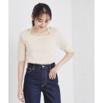 ニット セーター スクエアネック ギャザースリーブ リブ ニット トップス レディース