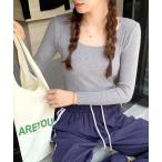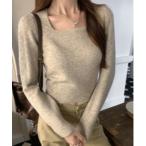 ニット セーター ソリッドカラー スクエアネック 長袖 リブ ニット プルオーバー レディース