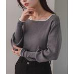 ニット セーター スクエアネック配色ニット バイカラー ニット 配色トップス スクエアネック レイヤードトップス 長袖 秋服 冬服 レディース