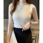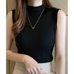 タンクトップ ノースリーブ ハイネックノースリーブニット レディース