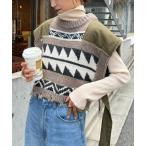 【SALE/50%OFF】FREAK'S STORE 布帛 ドッキング ニット ノースリーブ ドローコード プルオーバー【限定展開】 25SS フリークスストア トップス ニット ベージュ グリーン グレー ブラック