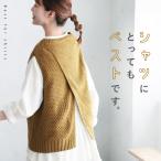 うしろでシャツとの重ね着を遊ぶニットベスト レディース ノースリーブ ローゲージ ウール混 毛混 トップス