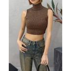 タンクトップ ノースリーブ ハイネックノースリーブニット レディース
